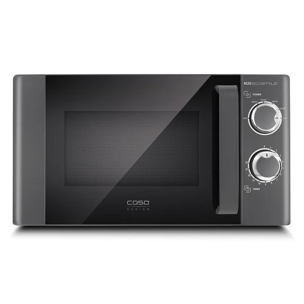 Классическая микроволновая печь CASO M 20 Ecostyle с вращающейся тарелкой, которая имеет базовый набор функций. Устройство работает в режиме приготовления, разогрева и разморозки.