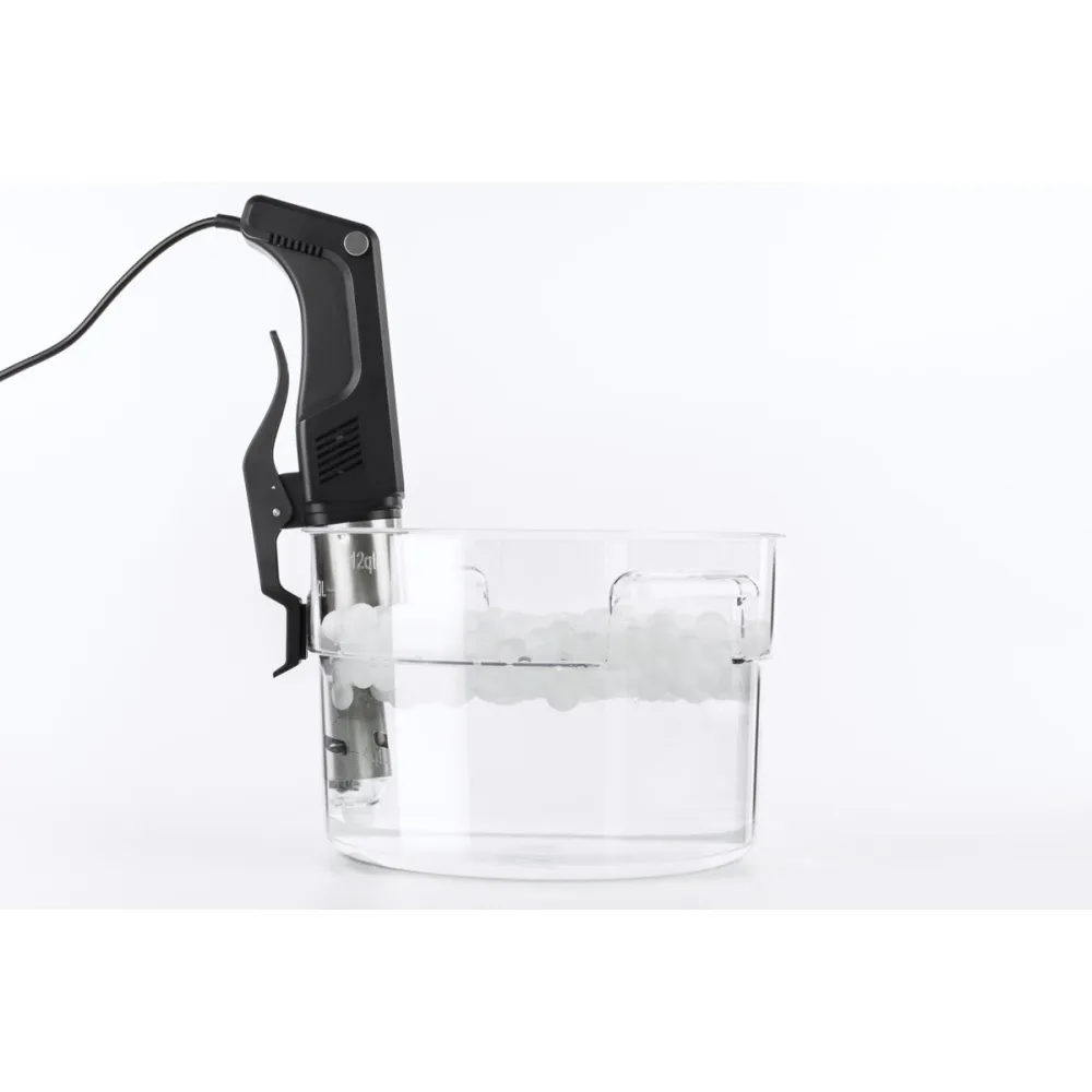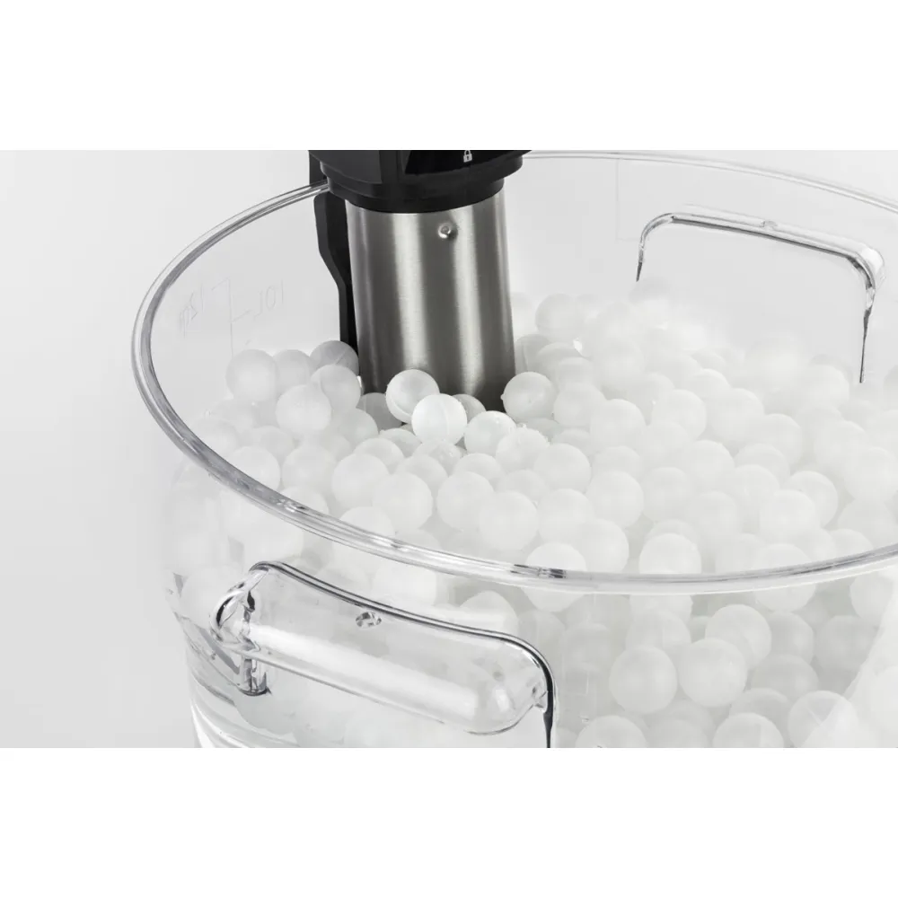 Набор для Су-вид который состоит из 200 термоизолирующих шариков и контейнера. Использование термостойких полипропиленовых плавающих шариков позволяет сократить потери тепла до 90%, уменьшить испарение, а следовательно и потери воды. Также использование шариков позволяет повысить точность измерения температуры. В комплекте 200 шариков диаметром 20 мм, которые абсолютно безопасны для моющей машины.