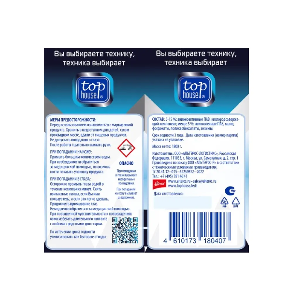 Концентрированный стиральный порошок TOP HOUSE Super effect 1.8 кг (180407)