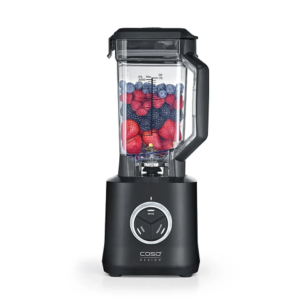 Блендер CASO Power Blender B 2000 — это стационарный высокомощный прибор, предназначенный для измельчения, смешивания и взбивания различных ингредиентов в домашних условиях. С его помощью можно легко приготовить смузи, коктейли, супы-пюре, соусы и другие блюда. Управление осуществляется с помощью электромеханической панели, обеспечивающей простоту и удобство использования. Блендер оснащен прочной чашей объемом 2 литра, изготовленной из тритана — легкого и устойчивого к повреждениям материала. Нескользящие ножки обеспечивают устойчивость устройства на рабочей поверхности.