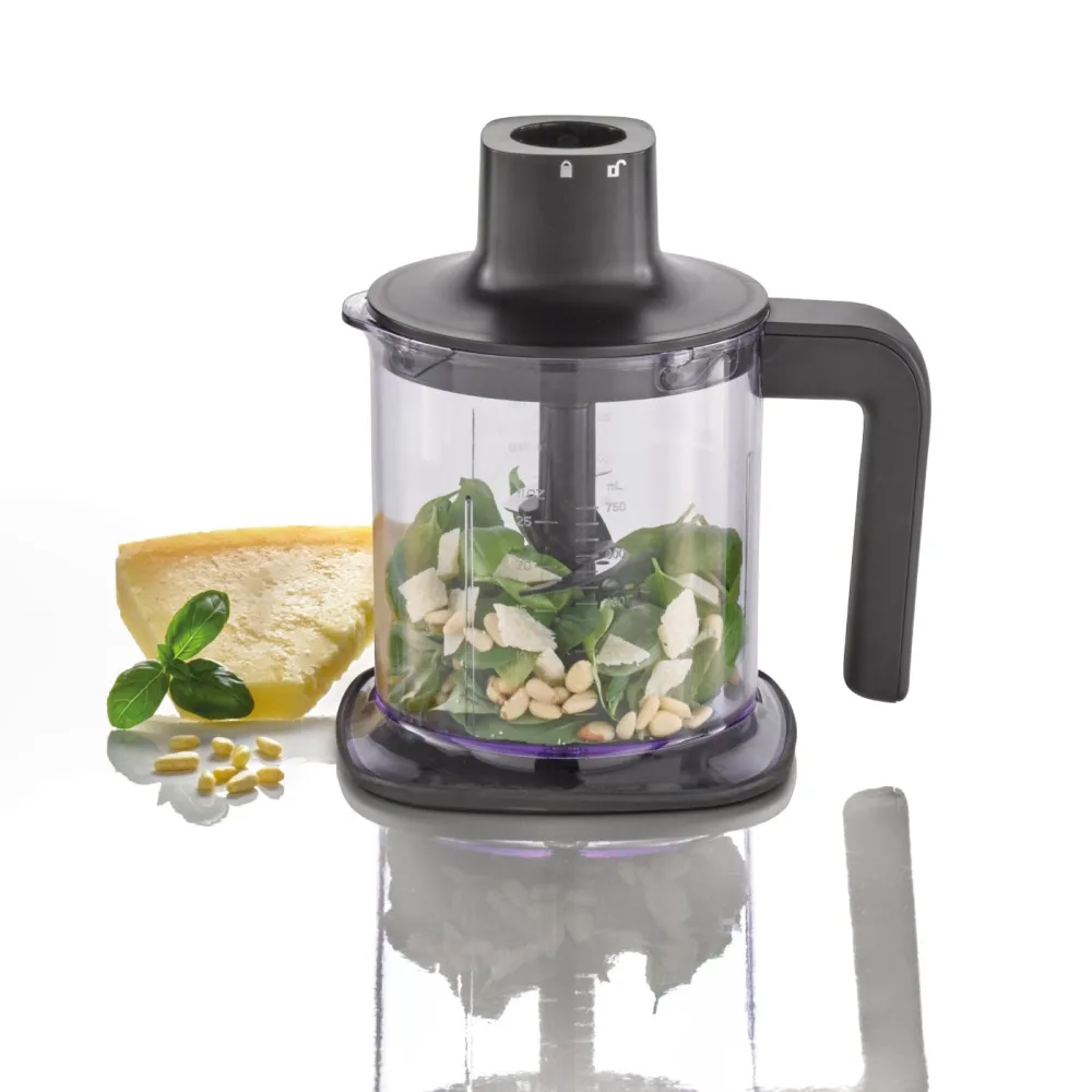 Пользуйтесь всеми возможностями погружного блендера, готовьте новые блюда и экспериментируйте с рецептами. В комплекте идут 2 основные насадки: погружной стержневой миксер и венчик для взбивания и перемешивания. Закрытый измельчитель не даст даже мелким частичкам еды разлететься в стороны.