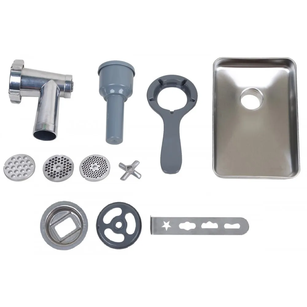 Насадка-мясорубка для кухонного комбайна серии KM 1200 Chef предназначена для быстрого приготовления мясного фарша. В комплектации 3 решетки, которые позволяют выполнять обработку разных продуктов: 3 мм (мелкая), 5 мм (средняя) и 8 мм (крупная). Также в комплекте дополнительные насадки для готовки домашних колбас и печенья, загрузочный поддон и толкатель.