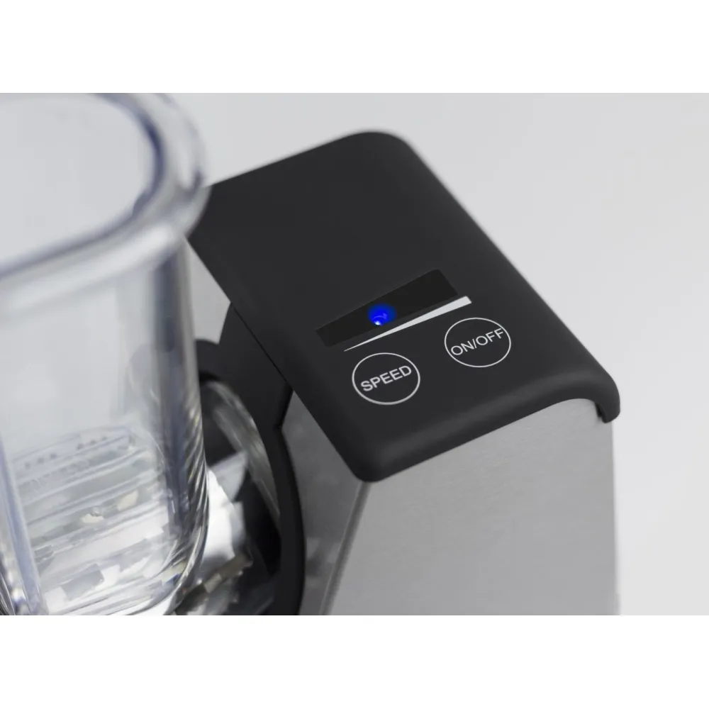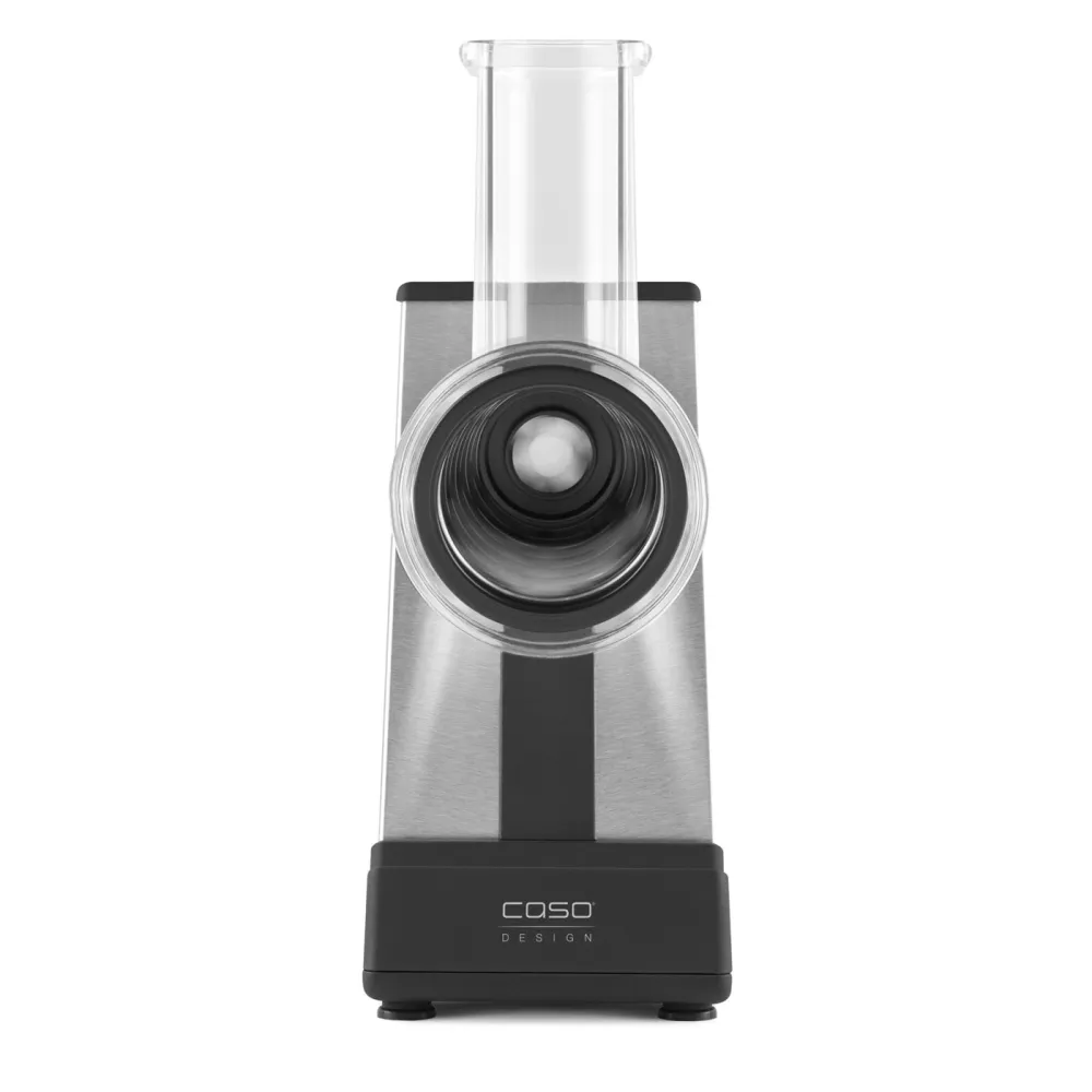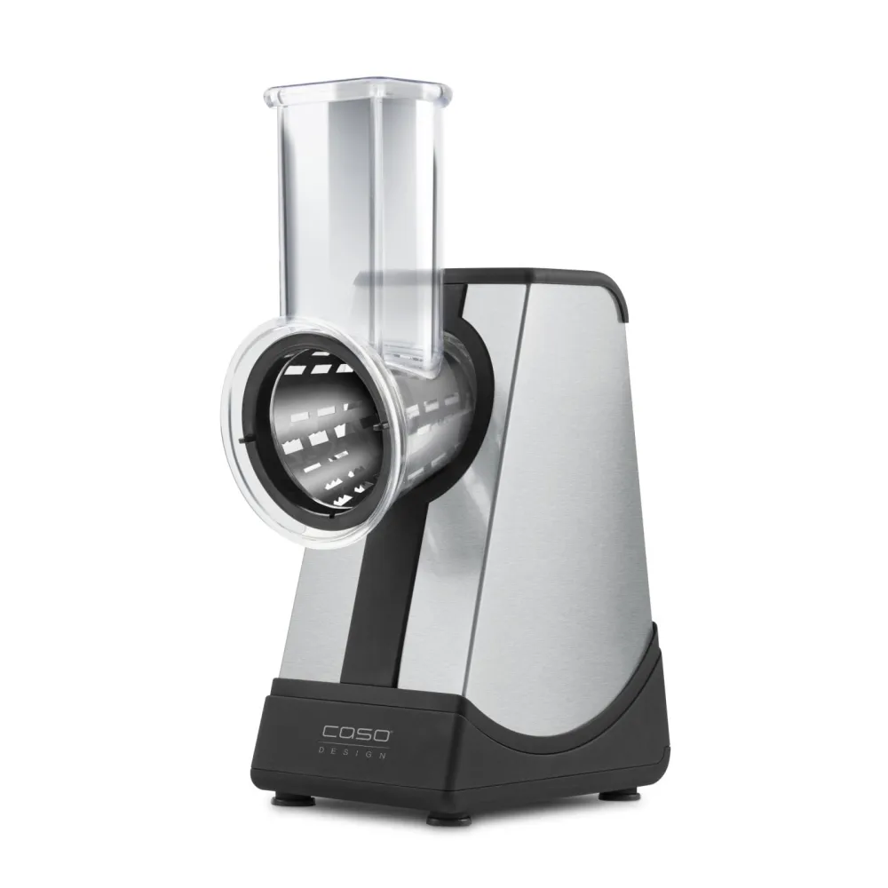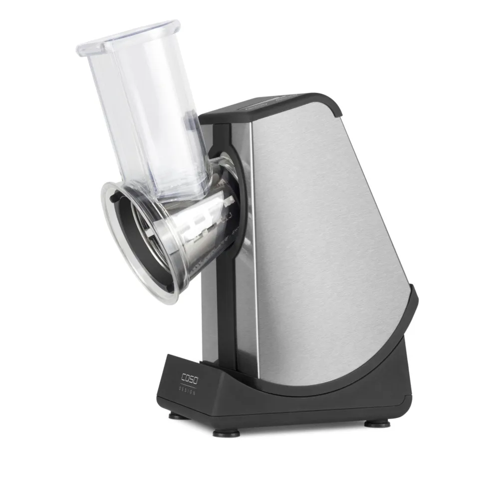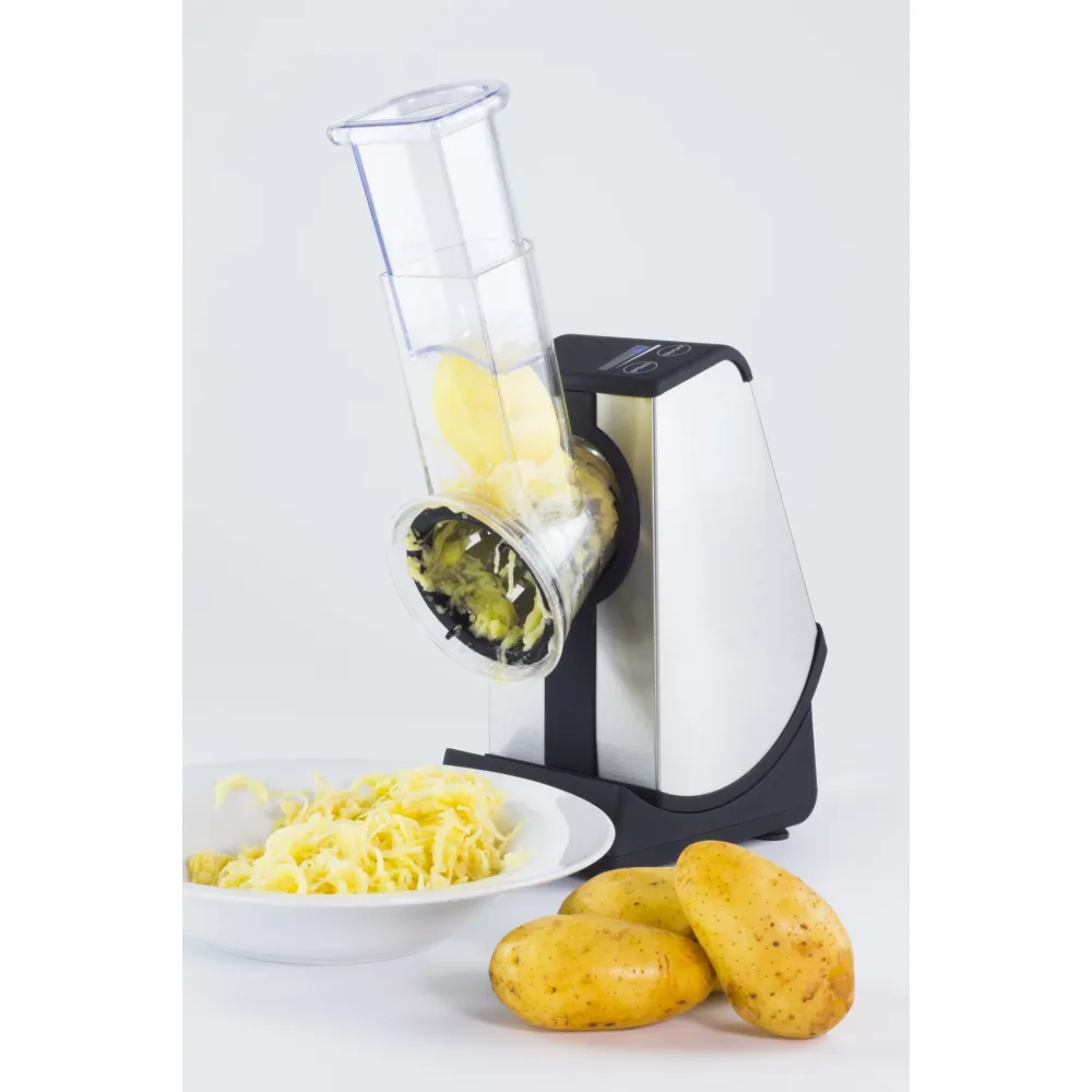Управление устройством осуществляется при помощи сенсорной панели управления и 5 уровней скоростей. Благодаря продуманной конструкции, натертые фрукты или овощи сами попадают в подставленную тарелку/емкость. Имеется режим наклона, для более удобного выбора позиции. Измельчитель оснащен четырьмя сменными барабанами (диаметр 75 мм), мощным двигателем, что делает его своеобразным аналогом сразу нескольким кухонным приборам. Широкая загрузочная горловина позволяет помещать в устройство даже большие продукты (50х50 мм). Задержка безопасности при включении – 3 секунды.