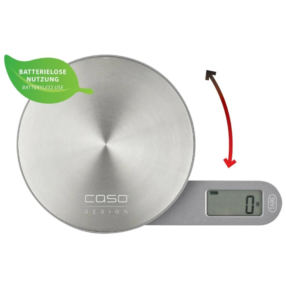 Кухонные весы CASO Kitchen EcoMate - используют кинетическую энергию (энергия движения), одного движения рычага будет достаточно для нескольких минут работы. Устройство отличается максимальной эффективностью и минимальным воздействием на окружающую среду. Весы имеют несколько режимов измерения: граммы, унции, миллилитры.