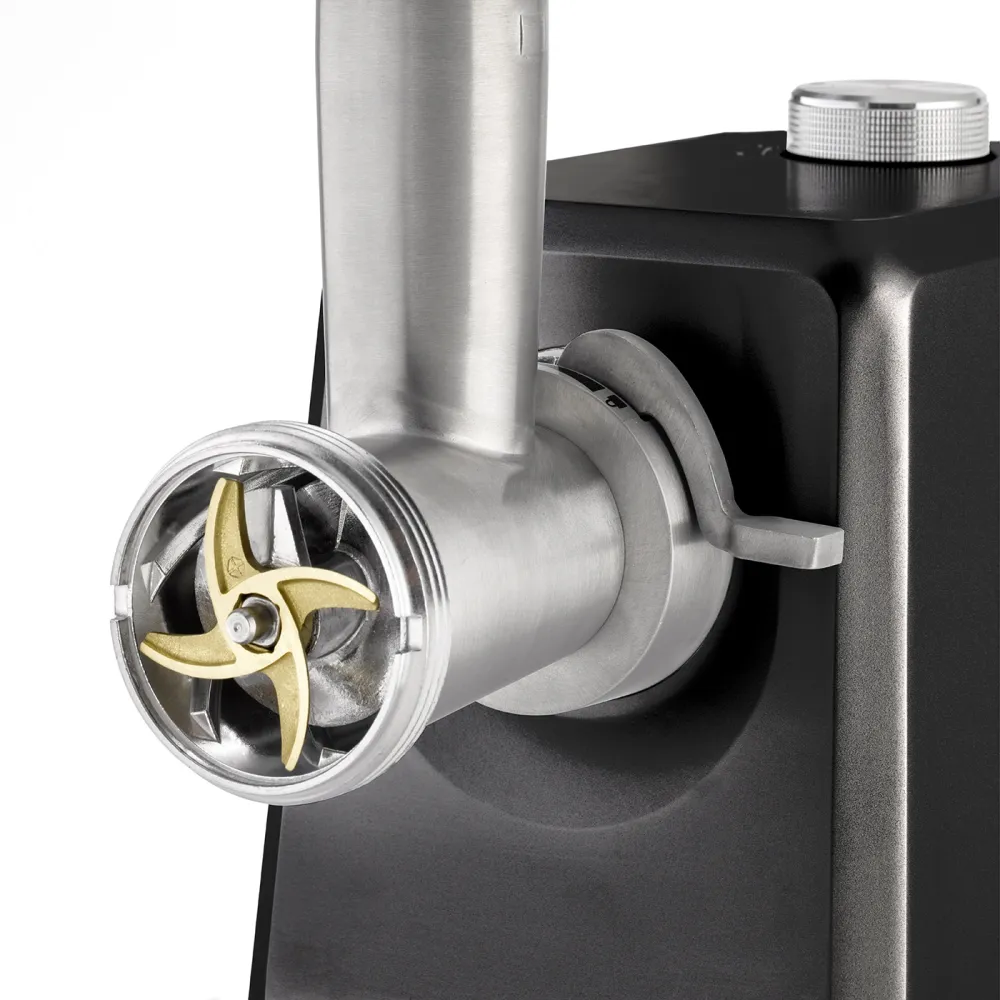 Двигатель максимальной мощностью 2500 Вт способен быстро переработать до 2,5 кг продуктов и без особых усилий измельчить сырое и приготовленное мясо, рыбу, овощи и многое другое. Помимо удобной работы с двумя уровнями скорости, FW 2500 впечатляет высококачественными и прочными лезвиями с титановой отделкой и практичной функцией возврата, которая мягко удаляет остатки. В комплект входит большой алюминиевый поддон, а также поддон для капель 2-в-1, который также служит крышкой для алюминиевого поддона.