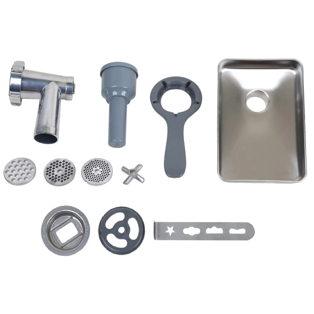 решетки 3 мм. 5 мм и 8 мм. насадка для колбас. насадка для печенья. загрузочный поддон. толкатель