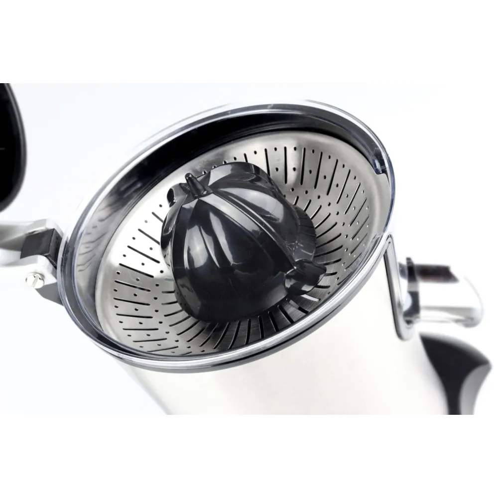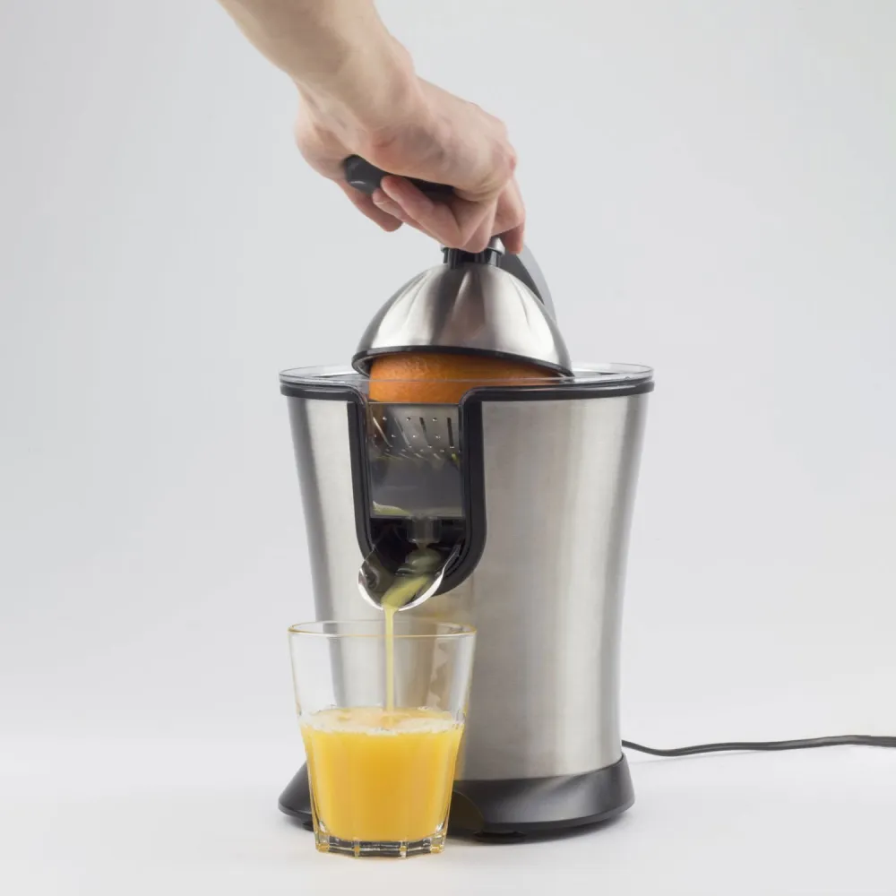 Для выдавливания сока, цитрус необходимо разрезать пополам и поместить на конус внутри прибора. После прижимания цитруса при помощи ручки, конус начинает вращение, и сок равномерно выжимается из плода. Мякоть собирается в сито, а сок течет в подставленный стакан, чашку или любую другую емкость.