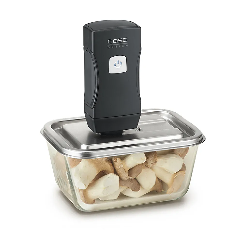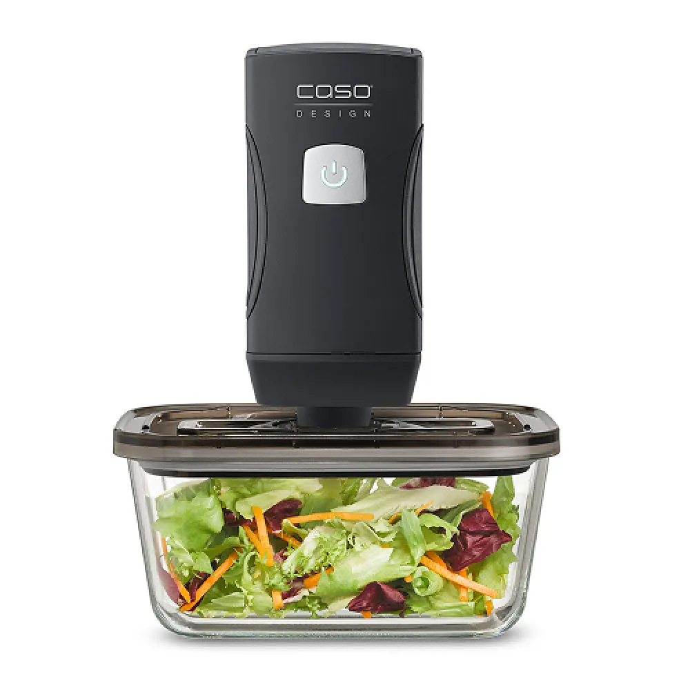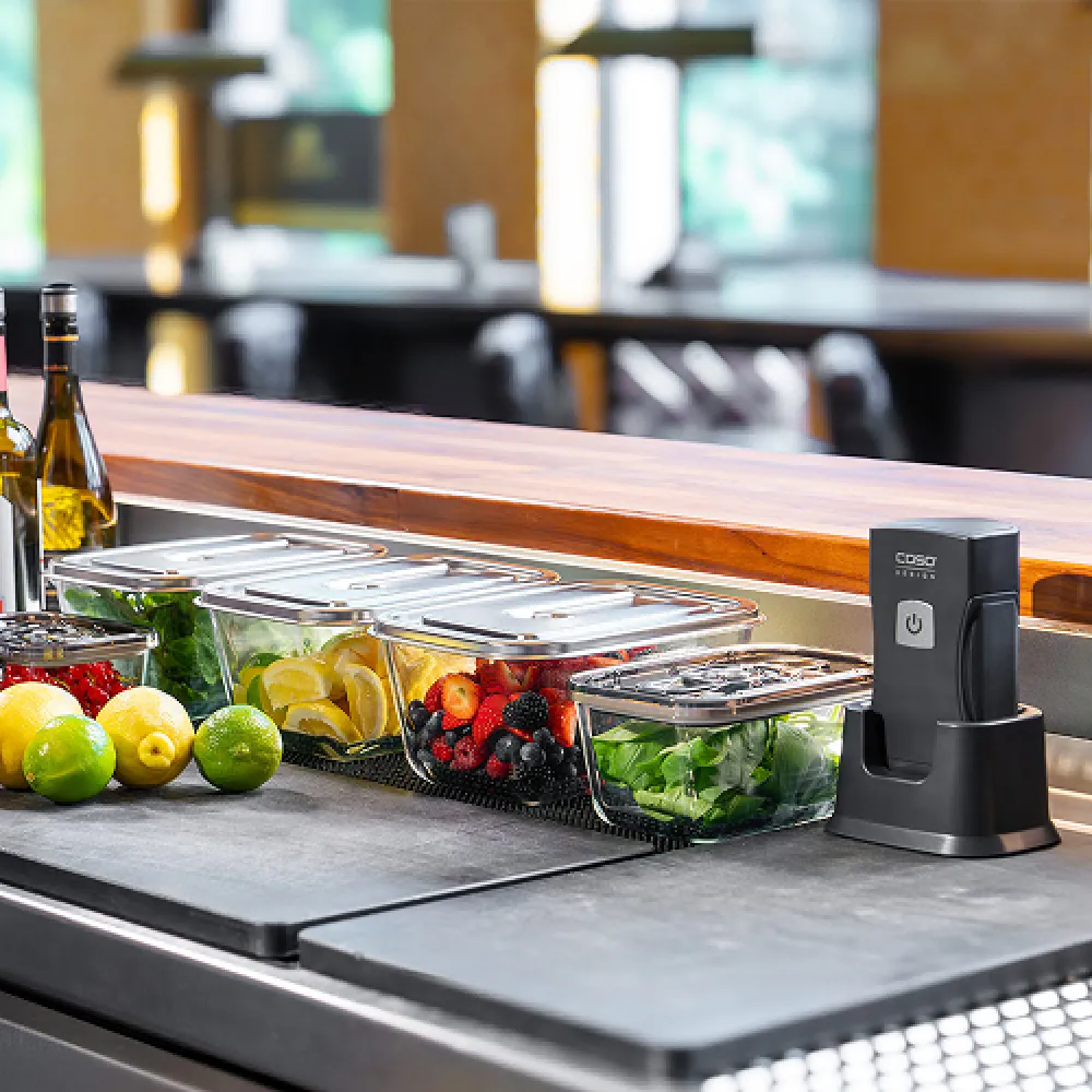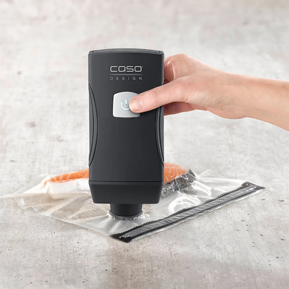 CASO Vacu OneTouch Pro Set идеально подходит для использования дома или в поездках, позволяя сохранять продукты свежими без необходимости в больших стационарных вакуумных упаковщиках.