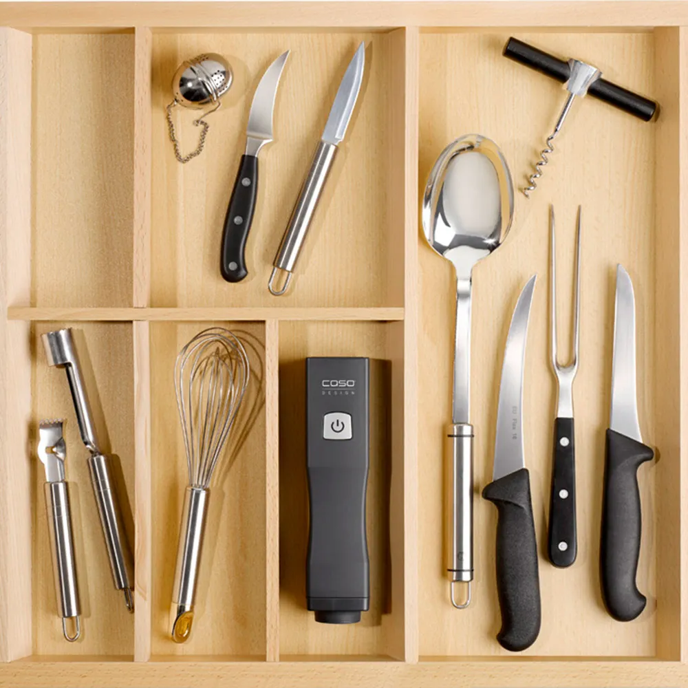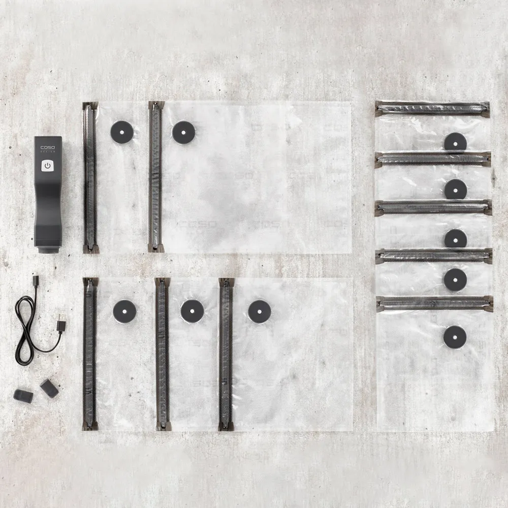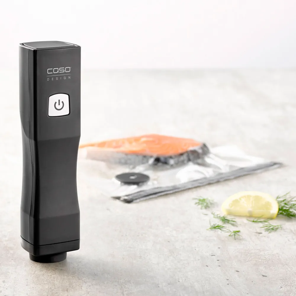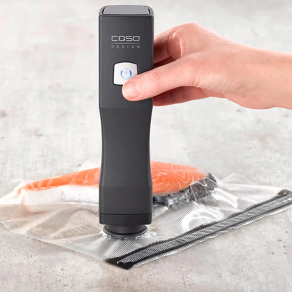 Ручной вакуумный упаковщик CASO Vacu OneTouch без камеры быстро откачивает воздух из пакетов и контейнеров. Используйте для заготовки и упаковки продуктов на месте, даже если рядом нет розетки. Сохраняйте продукты в вакууме сразу после разделки. В отличие от полностью ручных устройств CASO Vacu OneTouch работает на встроенном Li-ion аккумуляторе, и откачивает воздух с давлением до 0,4 бара и достигает производительности 3 л/мин.