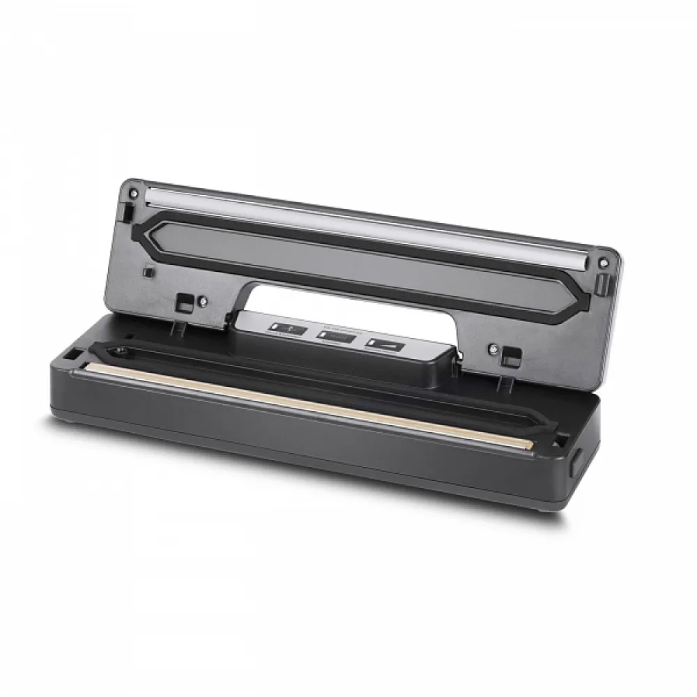 Вся линейка имеет широкую тефлоновую ленту запаивания, длиной 30 см и электронный контроль температуры. Качественный ABS пластик и передняя панель крышки из нержавеющей стали убережет вакууматор от падения посторонних предметов. Вакуумный упаковщик устойчив к пятнам и царапинам, а также легко очищаются мягкой тканью.