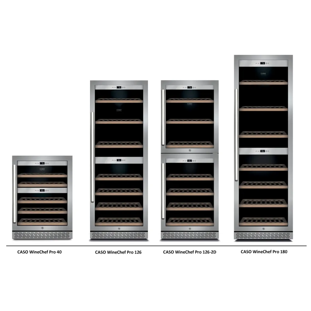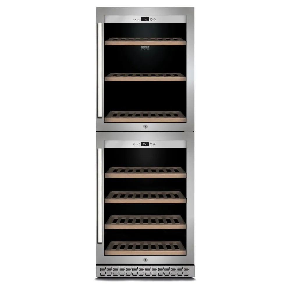 Двухзонный компрессорный винный холодильник CASO WineChef Pro 126-2D, предназначенный для хранения вина в температурном диапазоне от 5 до 20°C. Верхняя зона предназначена для хранения белых вин, нижняя – для красных. Зоны работают автономно, каждая оборудована собственным контуром охлаждения и панелью управления. Винный холодильник CASO WineChef Pro 126-2D оборудован системой компрессорного охлаждения, соответствующей стандарту энергопотребления «А». Работающий холодильник не издает звуков громче 40 дБ и не помешает ни сну, ни работе.
